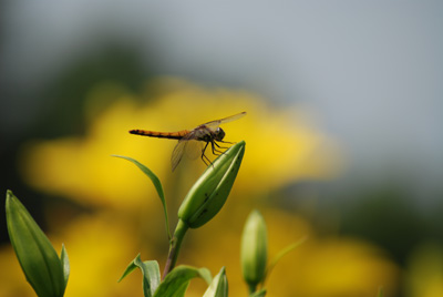 ぬけるような青空に映えるしばの緑と、百合の黄色がとても奇麗でした。